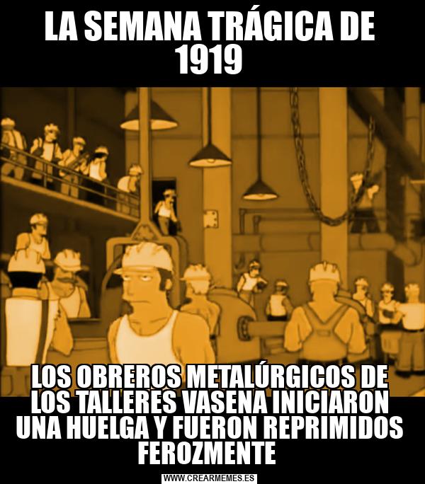 LA SEMANA TRÁGICA DE 1919 LOS OBREROS METALÚRGICOS DE LOS TALLERES VASENA INICIARON UNA HUELGA Y FUERON REPRIMIDOS FEROZMENTE