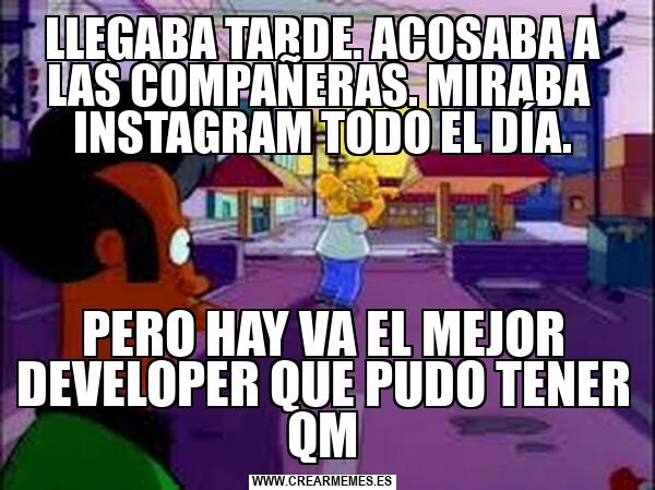 LLEGABA TARDE. ACOSABA A LAS COMPAÑERAS. MIRABA INSTAGRAM TODO EL DÍA. PERO HAY VA EL MEJOR DEVELOPER QUE PUDO TENER QM