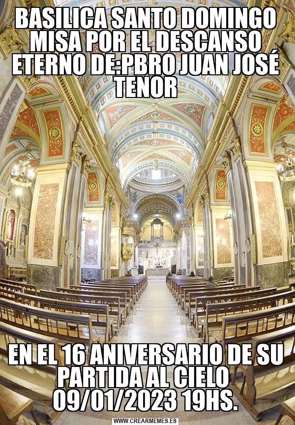 BASILICA SANTO DOMINGO MISA POR EL DESCANSO ETERNO DE:PBRO JUAN JOSÉ TENOR EN EL 16 ANIVERSARIO DE SU PARTIDA AL CIELO 09/01/2023 19HS.