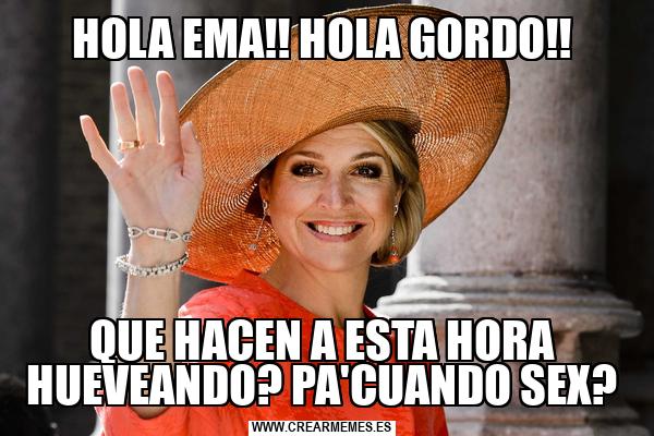 HOLA EMA!! HOLA GORDO!! QUE HACEN A ESTA HORA HUEVEANDO? PA'CUANDO SEX?