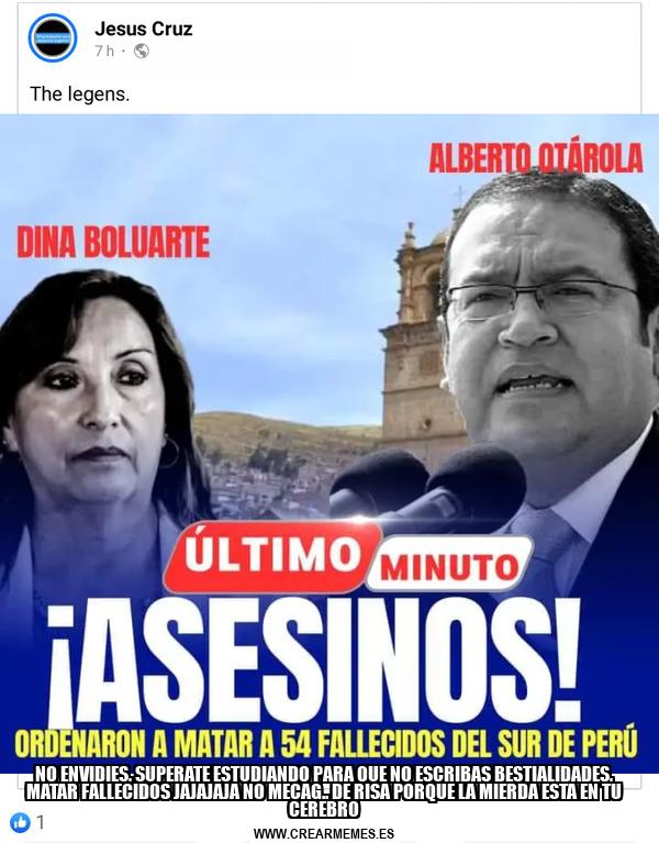 NO ENVIDIES, SUPERATE ESTUDIANDO PARA QUE NO ESCRIBAS BESTIALIDADES, MATAR FALLECIDOS JAJAJAJA NO MECAG.. DE RISA PORQUE LA MIERDA ESTA EN TU CEREBRO