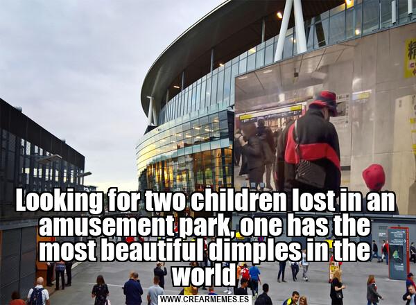 Looking for two children lost in an amusement park, one has the most beautiful dimples in the world