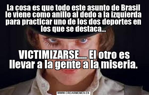 La cosa es que todo este asunto de Brasil le viene como anillo al dedo a la izquierda para practicar uno de los dos deportes en los que se destaca... VICTIMIZARSE.... El otro es llevar a la gente a la miseria.