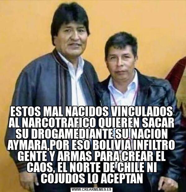 ESTOS MAL NACIDOS VINCULADOS AL NARCOTRAFICO QUIEREN SACAR SU DROGAMEDIANTE SU NACION AYMARA,POR ESO BOLIVIA INFILTRO GENTE Y ARMAS PARA CREAR EL CAOS, EL NORTE DE CHILE NI COJUDOS LO ACEPTAN