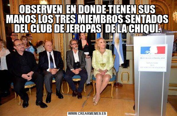OBSERVEN EN DONDE TIENEN SUS MANOS LOS TRES MIEMBROS SENTADOS DEL CLUB DE JEROPAS DE LA CHIQUI.