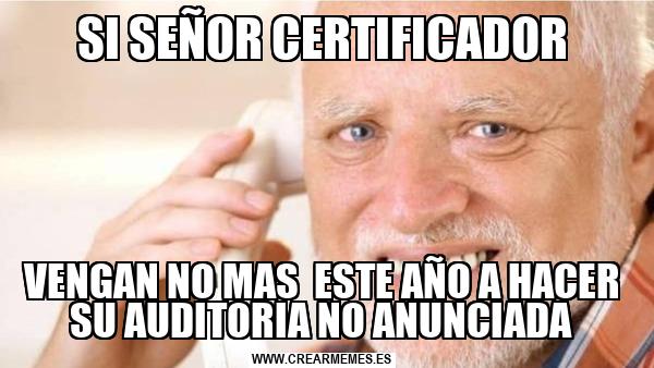 SI SEÑOR CERTIFICADOR VENGAN NO MAS ESTE AÑO A HACER SU AUDITORIA NO ANUNCIADA