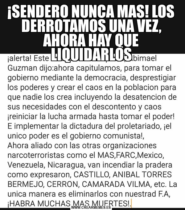 ¡SENDERO NUNCA MAS! LOS DERROTAMOS UNA VEZ, AHORA HAY QUE LIQUIDARLOS