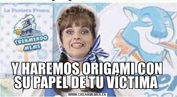 Y HAREMOS ORIGAMI CON SU PAPEL DE TU VÍCTIMA