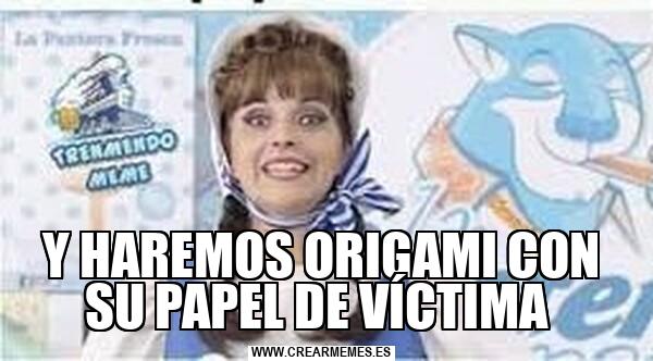 Y HAREMOS ORIGAMI CON SU PAPEL DE VÍCTIMA