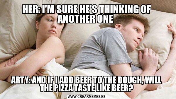 HER: I'M SURE HE'S THINKING OF ANOTHER ONE ARTY: AND IF I ADD BEER TO THE DOUGH, WILL THE PIZZA TASTE LIKE BEER?