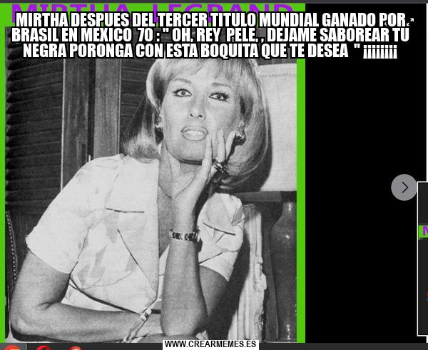 MIRTHA DESPUES DEL TERCER TITULO MUNDIAL GANADO POR BRASIL EN MEXICO 70 : " OH, REY PELE, , DEJAME SABOREAR TU NEGRA PORONGA CON ESTA BOQUITA QUE TE DESEA " ¡¡¡¡¡¡¡¡
