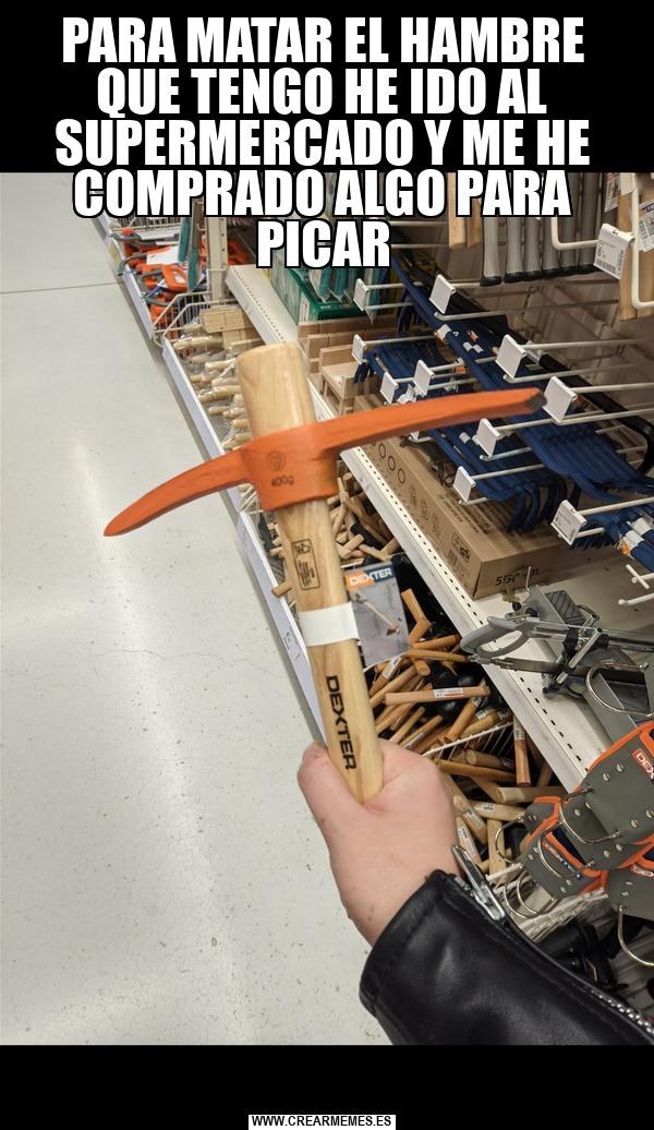 PARA MATAR EL HAMBRE QUE TENGO HE IDO AL SUPERMERCADO Y ME HE COMPRADO ALGO PARA PICAR