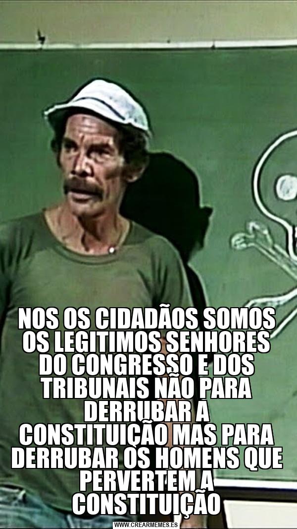 NOS OS CIDADÃOS SOMOS OS LEGITIMOS SENHORES DO CONGRESSO E DOS TRIBUNAIS NÃO PARA DERRUBAR A CONSTITUIÇÃO MAS PARA DERRUBAR OS HOMENS QUE PERVERTEM A CONSTITUIÇÃO