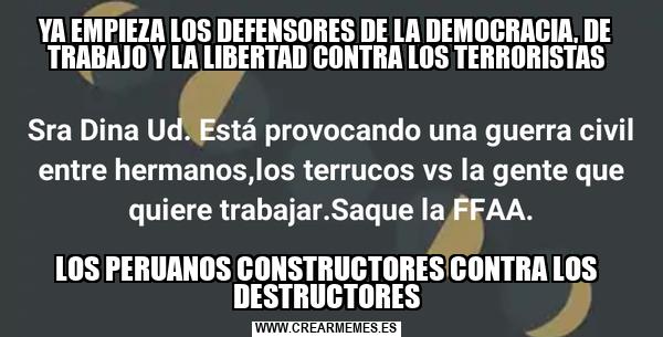 YA EMPIEZA LOS DEFENSORES DE LA DEMOCRACIA, DE TRABAJO Y LA LIBERTAD CONTRA LOS TERRORISTAS LOS PERUANOS CONSTRUCTORES CONTRA LOS DESTRUCTORES