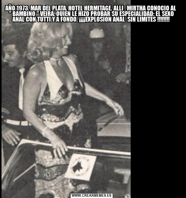 AÑO 1973, MAR DEL PLATA, HOTEL HERMITAGE. ALLI , MIRTHA CONOCIO AL " BAMBINO " VEIRA, QUIEN LE HIZO PROBAR SU ESPECIALIDAD: EL SEXO ANAL CON TUTTI Y A FONDO. ¡¡¡¡EXPLOSION ANAL SIN LIMITES !!!!!!!!