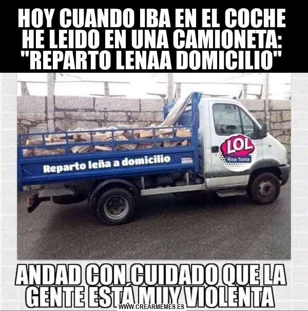 HOY CUANDO IBA EN EL COCHE HE LEIDO EN UNA CAMIONETA: "REPARTO LENAA DOMICILIO"