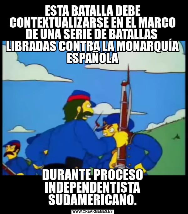ESTA BATALLA DEBE CONTEXTUALIZARSE EN EL MARCO DE UNA SERIE DE BATALLAS LIBRADAS CONTRA LA MONARQUÍA ESPAÑOLA DURANTE PROCESO INDEPENDENTISTA SUDAMERICANO.