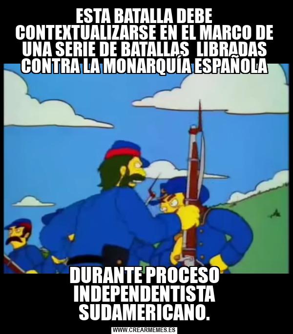 ESTA BATALLA DEBE CONTEXTUALIZARSE EN EL MARCO DE UNA SERIE DE BATALLAS LIBRADAS CONTRA LA MONARQUÍA ESPAÑOLA DURANTE PROCESO INDEPENDENTISTA SUDAMERICANO.