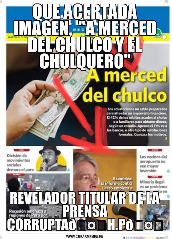 QUE ACERTADA IMAGEN, "A MERCED DEL CHULCO Y EL CHULQUERO" REVELADOR TITULAR DE LA PRENSA CORRUPTA