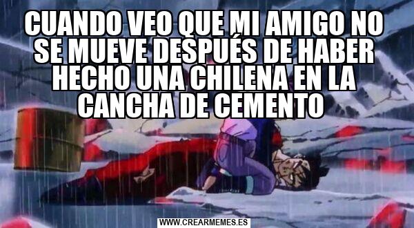 CUANDO VEO QUE MI AMIGO NO SE MUEVE DESPUÉS DE HABER HECHO UNA CHILENA EN LA CANCHA DE CEMENTO