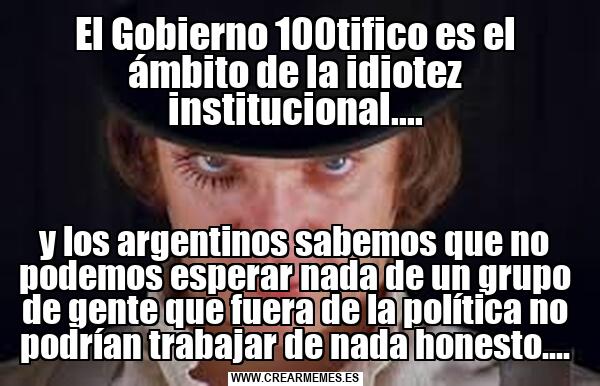 El Gobierno 100tifico es el ámbito de la idiotez institucional.... y los argentinos sabemos que no podemos esperar nada de un grupo de gente que fuera de la política no podrían trabajar de nada honesto....