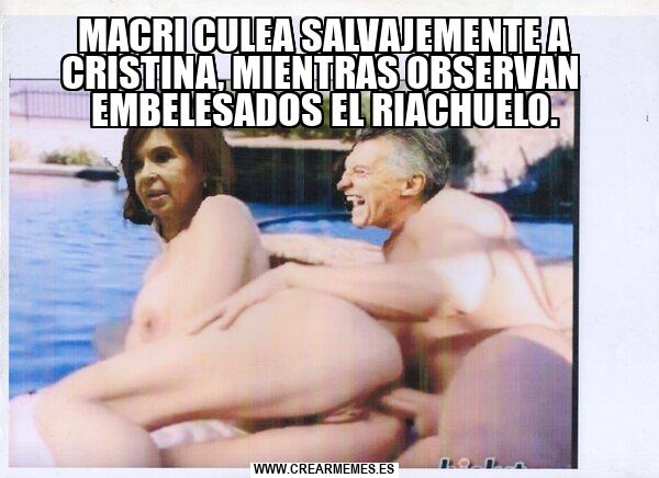 MACRI CULEA SALVAJEMENTE A CRISTINA, MIENTRAS OBSERVAN EMBELESADOS EL RIACHUELO.