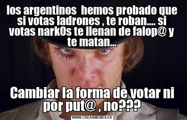 los argentinos hemos probado que si votas ladrones , te roban.... si votas nark0s te llenan de falop@ y te matan... Cambiar la forma de votar ni por put@ , no???