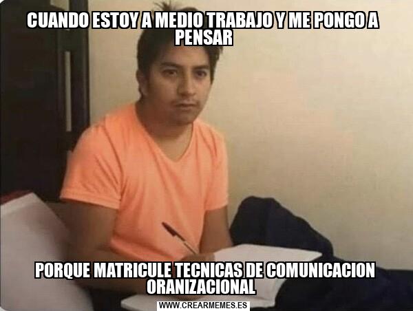 CUANDO ESTOY A MEDIO TRABAJO Y ME PONGO A PENSAR PORQUE MATRICULE TECNICAS DE COMUNICACION ORANIZACIONAL