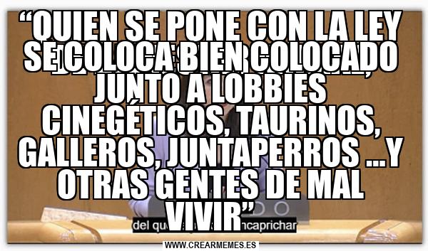 “QUIEN SE PONE CON LA LEY DE BIENESTAR ANIMAL, SE COLOCA BIEN COLOCADO JUNTO A LOBBIES CINEGÉTICOS, TAURINOS, GALLEROS, JUNTAPERROS …Y OTRAS GENTES DE MAL VIVIR”