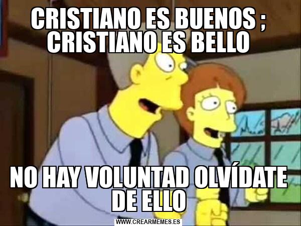 CRISTIANO ES BUENOS ; CRISTIANO ES BELLO NO HAY VOLUNTAD OLVÍDATE DE ELLO