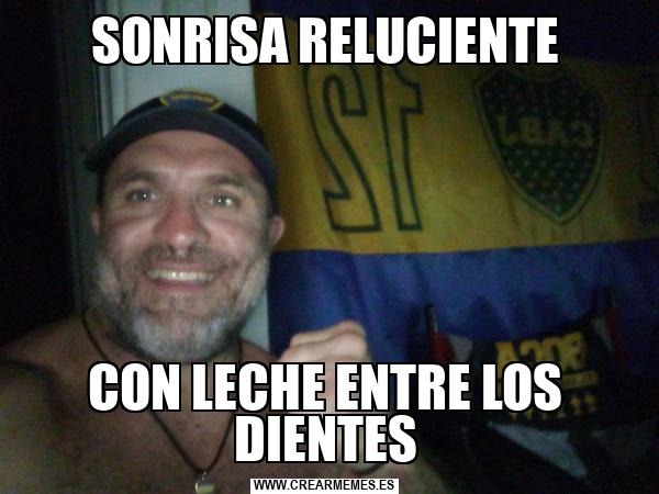 SONRISA RELUCIENTE CON LECHE ENTRE LOS DIENTES