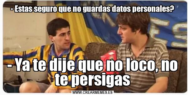 - Estas seguro que no guardas datos personales? - Ya te dije que no loco, no te persigas