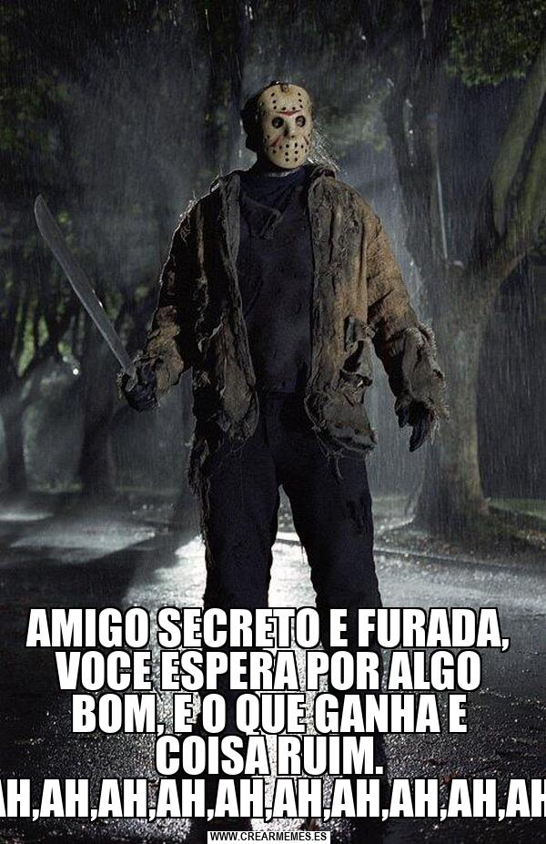 AMIGO SECRETO E FURADA, VOCE ESPERA POR ALGO BOM, E O QUE GANHA E COISA RUIM. AH,AH,AH,AH,AH,AH,AH,AH,AH,AH,AH,AH