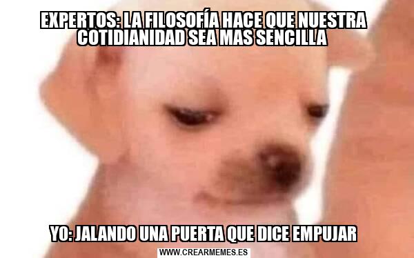 EXPERTOS: LA FILOSOFÍA HACE QUE NUESTRA COTIDIANIDAD SEA MAS SENCILLA YO: JALANDO UNA PUERTA QUE DICE EMPUJAR