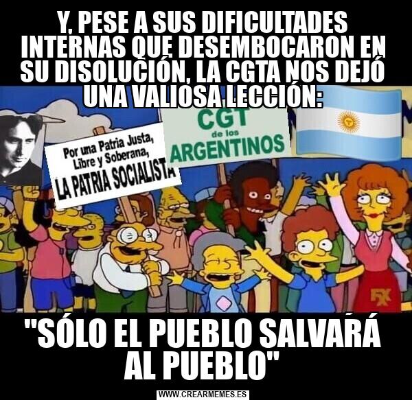 Y, PESE A SUS DIFICULTADES INTERNAS QUE DESEMBOCARON EN SU DISOLUCIÓN, LA CGTA NOS DEJÓ UNA VALIOSA LECCIÓN: "SÓLO EL PUEBLO SALVARÁ AL PUEBLO"