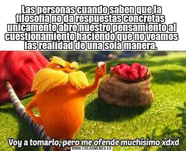 Las personas cuando saben que la filosofia no da respuestas concretas unicamente abre nuestro pensamiento al cuestionamiento haciendo que no veamos las realidad de una sola manera.