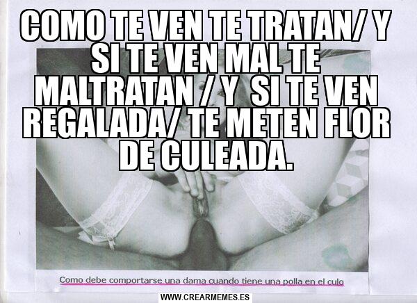 COMO TE VEN TE TRATAN/ Y SI TE VEN MAL TE MALTRATAN / Y SI TE VEN REGALADA/ TE METEN FLOR DE CULEADA.