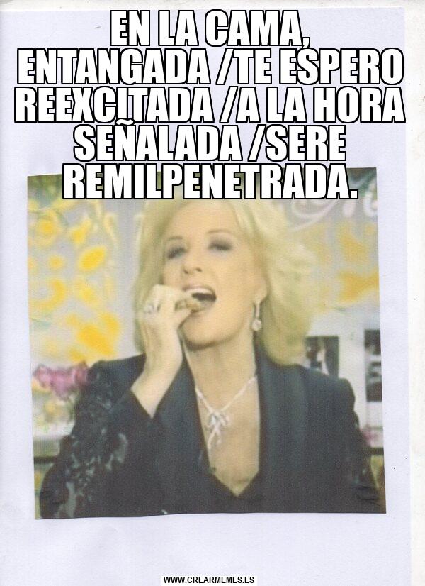EN LA CAMA, ENTANGADA /TE ESPERO REEXCITADA /A LA HORA SEÑALADA /SERE REMILPENETRADA.