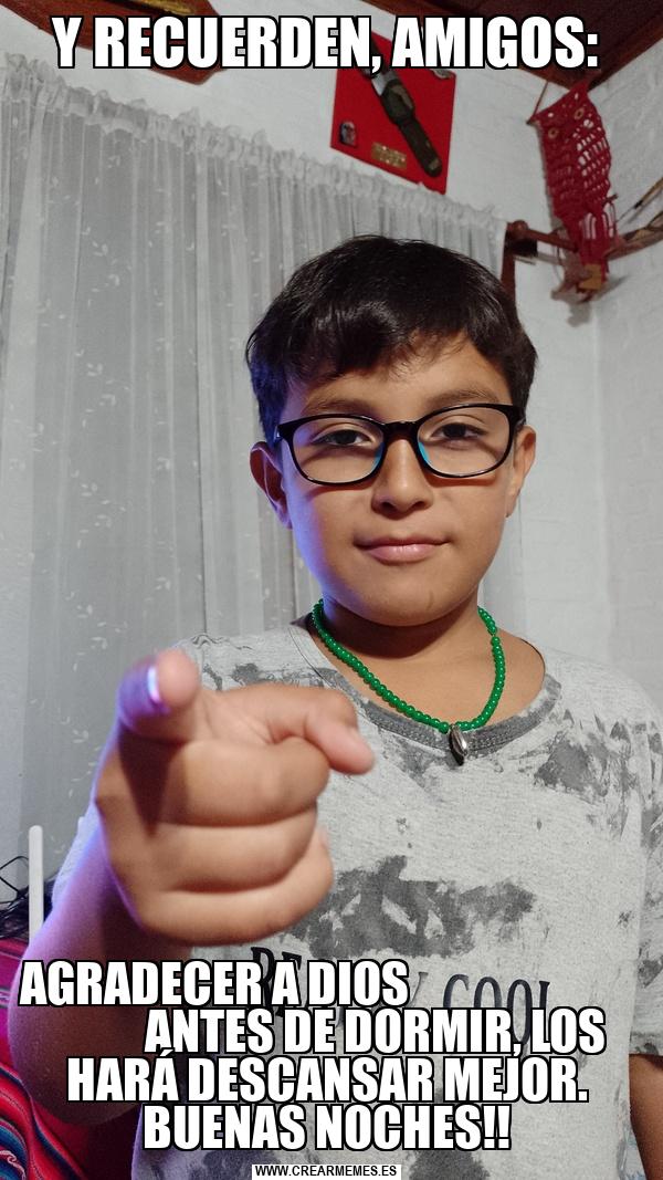 Y RECUERDEN, AMIGOS: AGRADECER A DIOS ANTES DE DORMIR, LOS HARÁ DESCANSAR MEJOR. BUENAS NOCHES!!