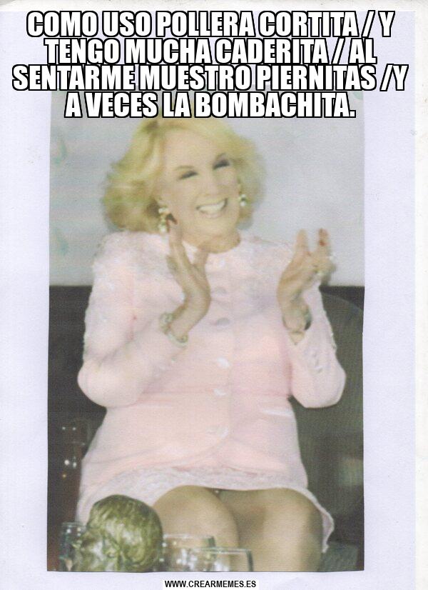 COMO USO POLLERA CORTITA / Y TENGO MUCHA CADERITA / AL SENTARME MUESTRO PIERNITAS /Y A VECES LA BOMBACHITA.