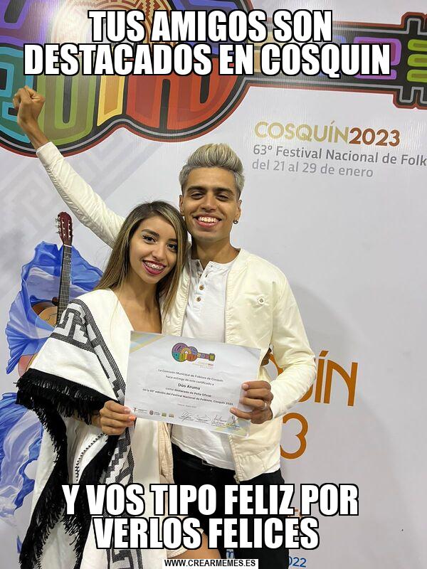 TUS AMIGOS SON DESTACADOS EN COSQUIN Y VOS TIPO FELIZ POR VERLOS FELICES