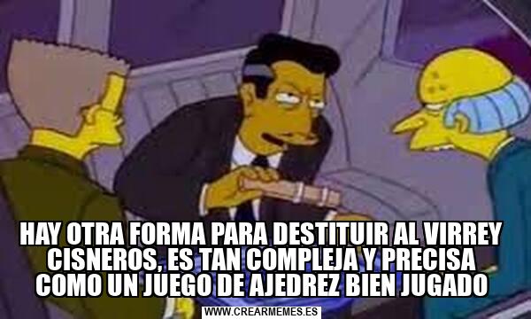 HAY OTRA FORMA PARA DESTITUIR AL VIRREY CISNEROS, ES TAN COMPLEJA Y PRECISA COMO UN JUEGO DE AJEDREZ BIEN JUGADO