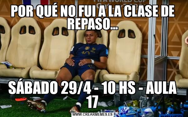 POR QUÉ NO FUI A LA CLASE DE REPASO... SÁBADO 29/4 - 10 HS - AULA 17