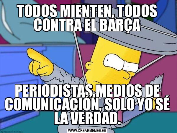 TODOS MIENTEN, TODOS CONTRA EL BARÇA PERIODISTAS,MEDIOS DE COMUNICACIÓN, SOLO YO SÉ LA VERDAD.