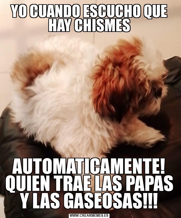 YO CUANDO ESCUCHO QUE HAY CHISMES AUTOMATICAMENTE! QUIEN TRAE LAS PAPAS Y LAS GASEOSAS!!!
