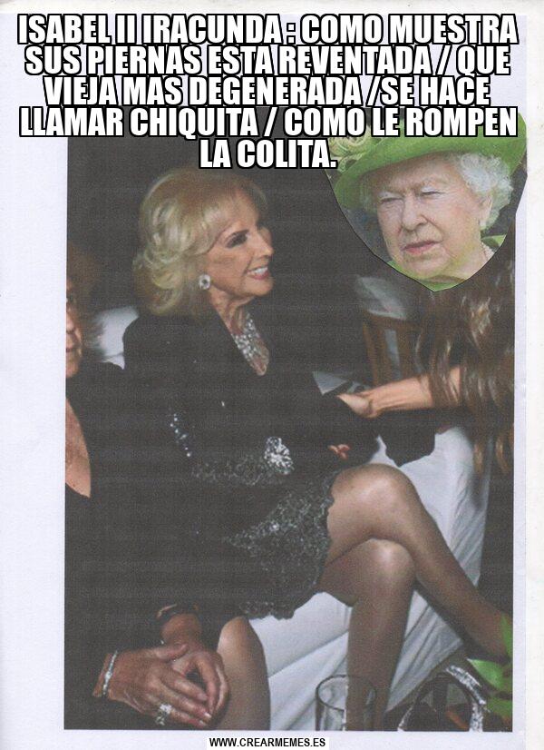 ISABEL II IRACUNDA : COMO MUESTRA SUS PIERNAS ESTA REVENTADA / QUE VIEJA MAS DEGENERADA /SE HACE LLAMAR CHIQUITA / COMO LE ROMPEN LA COLITA.