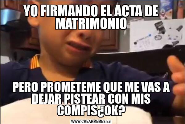 YO FIRMANDO EL ACTA DE MATRIMONIO PERO PROMETEME QUE ME VAS A DEJAR PISTEAR CON MIS COMPIS¿OK?