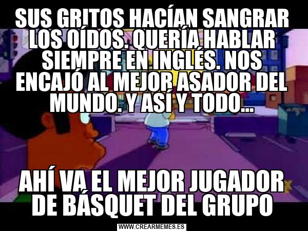 SUS GRITOS HACÍAN SANGRAR LOS OÍDOS. QUERÍA HABLAR SIEMPRE EN INGLÉS. NOS ENCAJÓ AL MEJOR ASADOR DEL MUNDO. Y ASÍ Y TODO… AHÍ VA EL MEJOR JUGADOR DE BÁSQUET DEL GRUPO