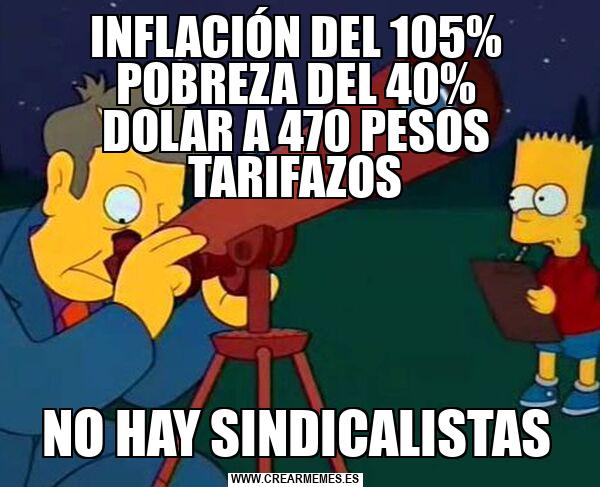 INFLACIÓN DEL 105% POBREZA DEL 40% DOLAR A 470 PESOS TARIFAZOS NO HAY SINDICALISTAS