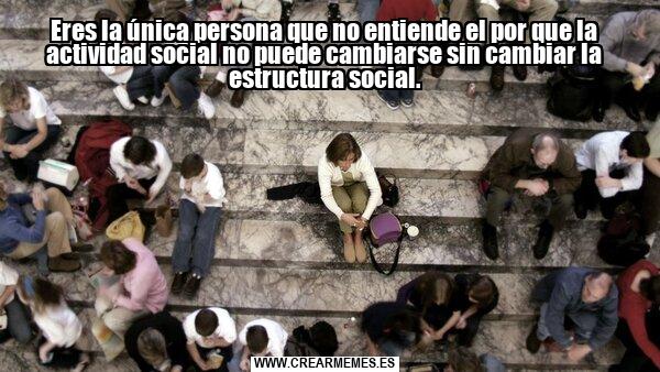 Eres la única persona que no entiende el por que la actividad social no puede cambiarse sin cambiar la estructura social.